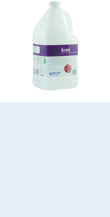 Limpiador multiusos con desinfectante líquido concentrado biodegradable, ha sido diseñado especialmente para el cuidado de sus pisos ya que elimina la grasa, el polvo y la mugre, sin dejar residuos. Ares recupera el brillo perdido dejando un ambiente agradable con aromas frescos, limpios y libres de bacterias.